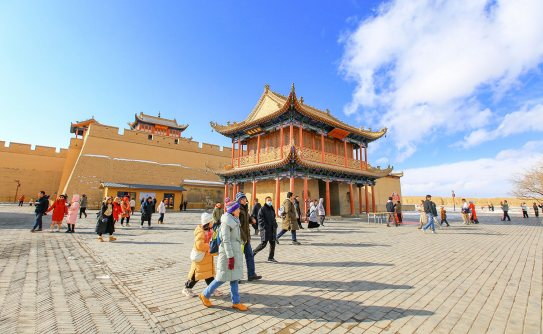 春节假期,我市旅游火热,国内外游客走进关城景区,登上雄伟壮丽的长城,品味长城文化,体验丝路风情,欣赏大漠风光,欢度新春佳节。李巍 马玉福 摄影报道
