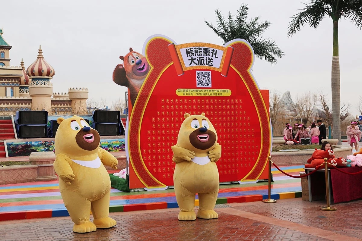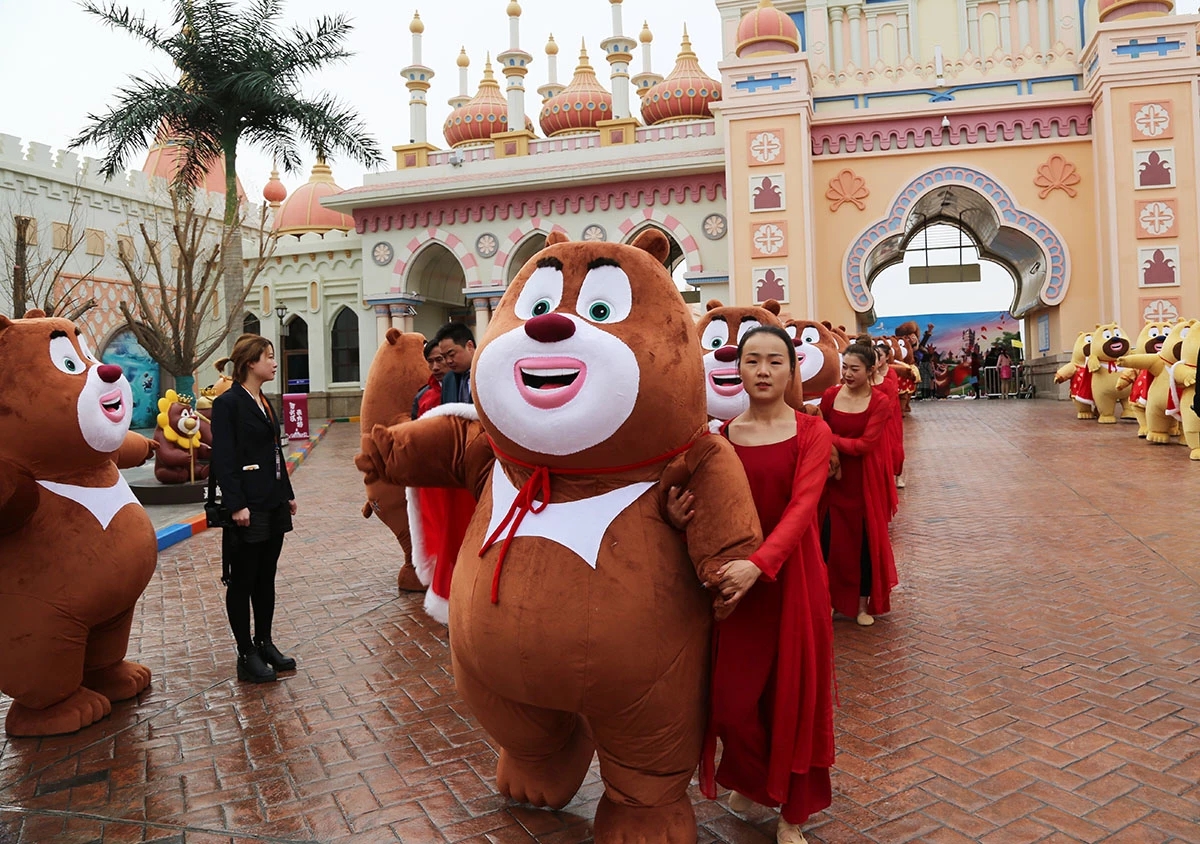 ▲憨态可掬的熊大熊二出场,为大家带来欢乐
