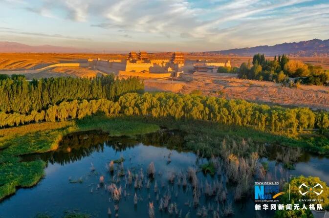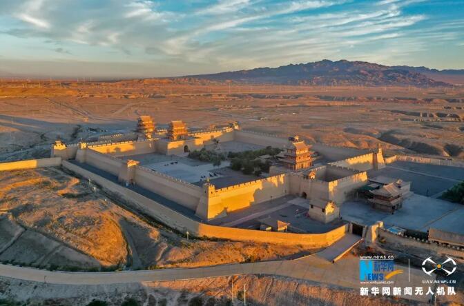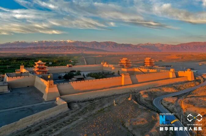 【“飞阅”中国】“天下第一雄关”沐金色晨光 新华网发(成林 摄)