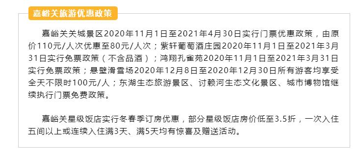 据甘肃省文化和旅游厅消息,日前,为激活冬春旅游市场,拉动文化旅游市场消费,嘉峪关市发布冬春季旅游优惠政策,策划推出五大主题文旅活动。