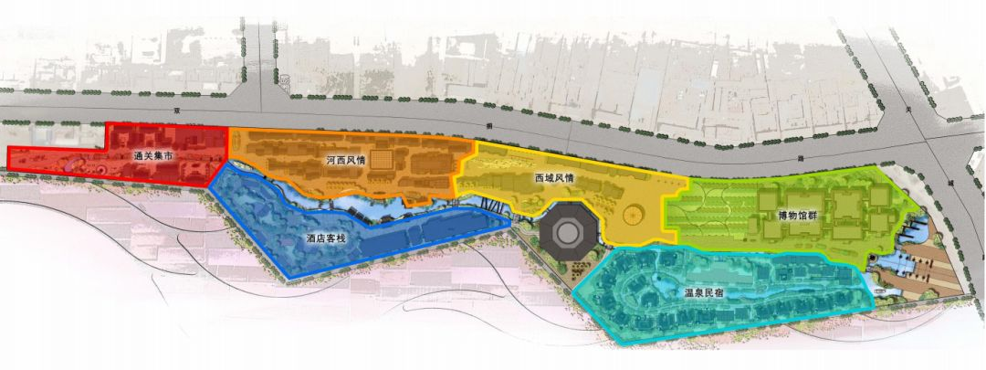 业态区划分为文化展示、美食餐饮、特色购物、休闲娱乐、酒店民宿、主题广场和配套服务等功能。是集旅游观光、美食娱乐、文化演艺、民俗风情和亲子体验为一体的大型综合性旅游景区,建成后将成为丝绸之路沿线一张靓丽的旅游名片。