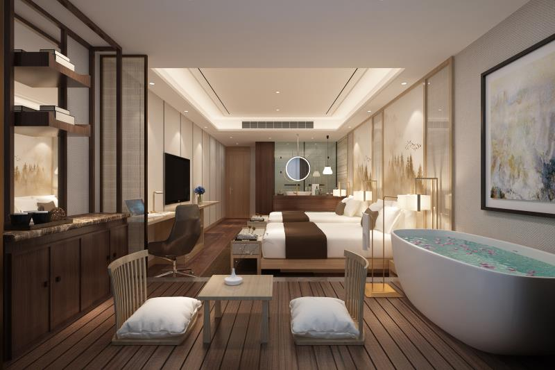 酒店按照准五星级打造,内设标准间、豪华大床房、亲子房、家庭房、麻将房、行政套房六种房型,总计118间新颖别致的全景观客房。