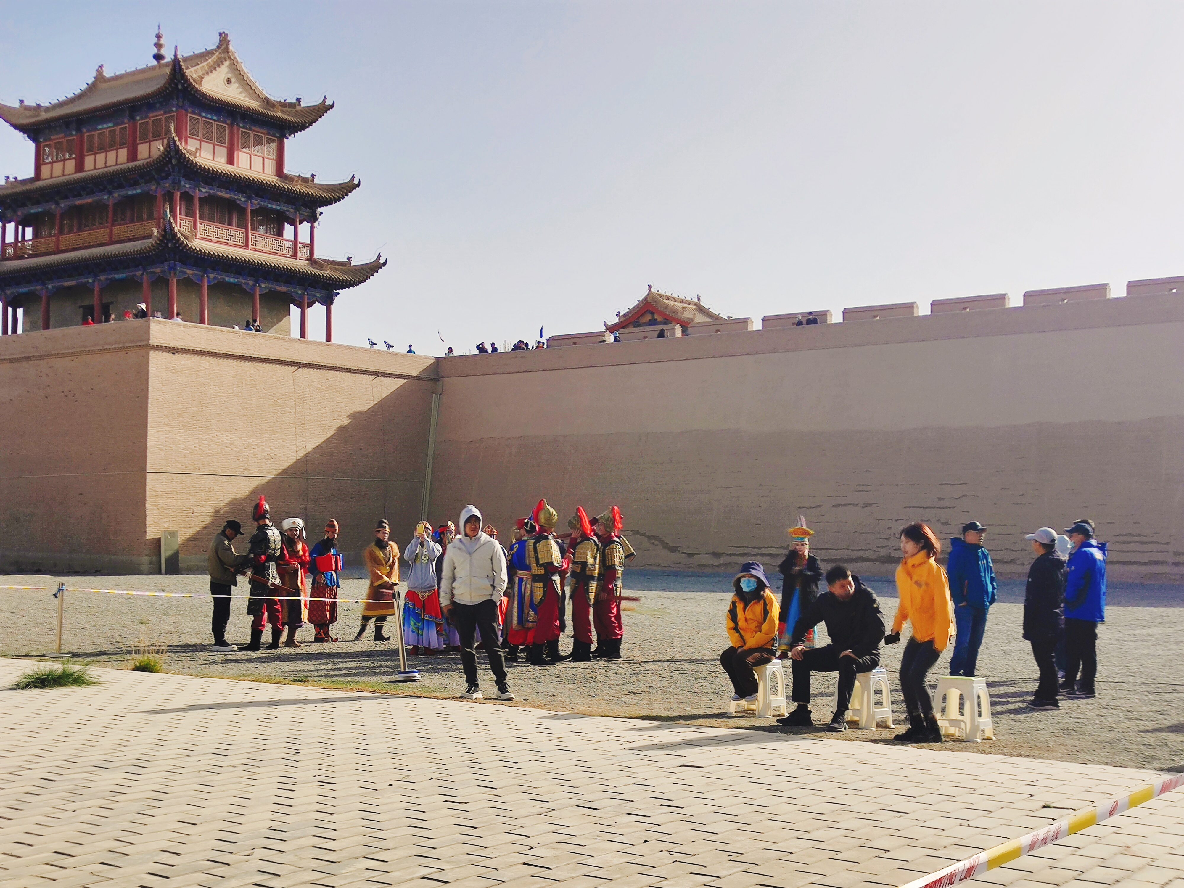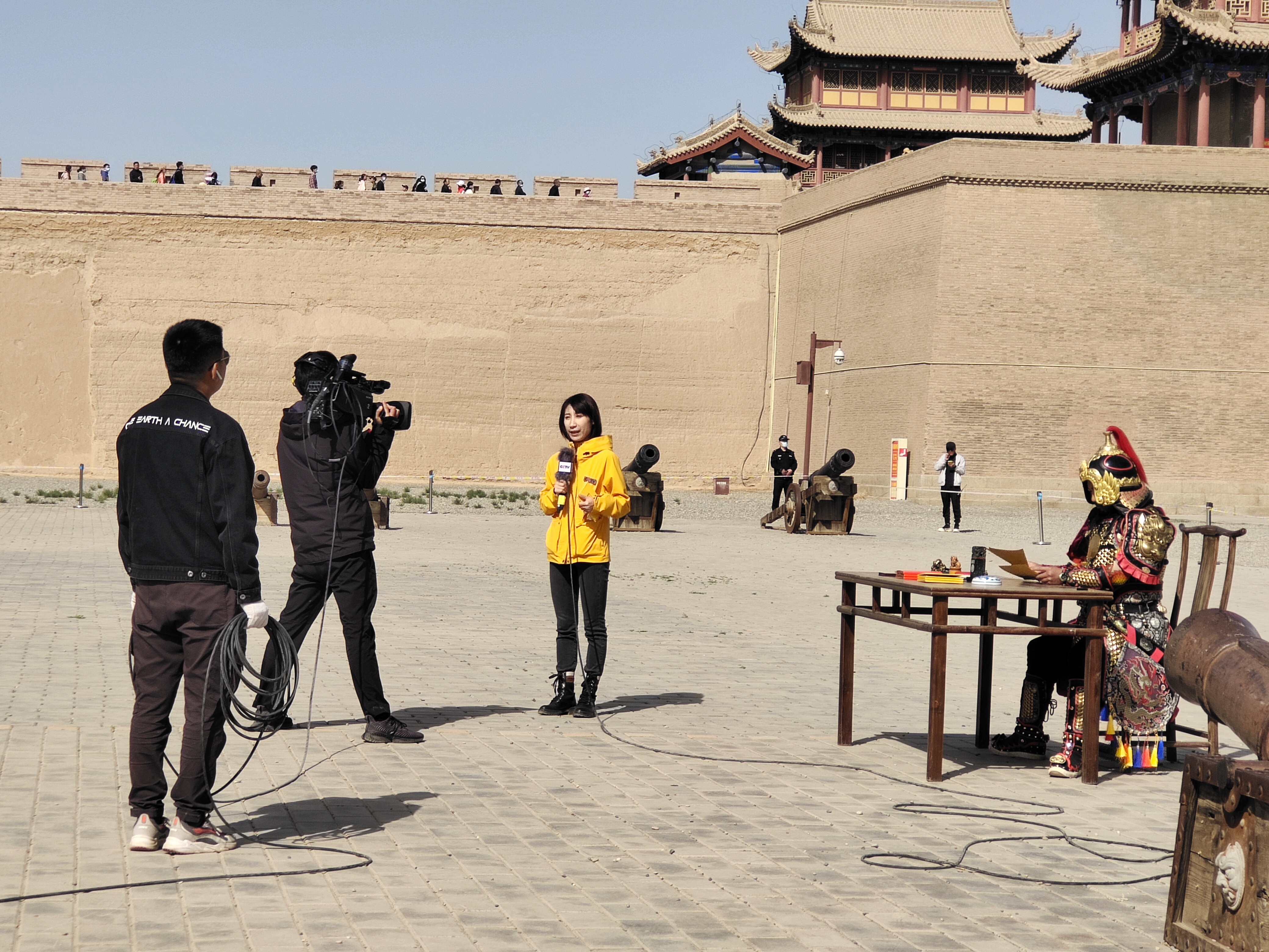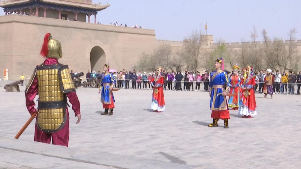 “五一”期间,嘉峪关关城旅游景区虽然游客众多,记者在活动现场看见秩序井然,公安部门和景区内的安保力量相互配合,维持好直播现场秩序。内城练武场的西域公主入关仪式表演吸引了不少游客的注意。文昌阁前的新媒体直播也引来许多游客,在观看直播的同时,大家也纷纷在央视新闻客户端直播页面参与互动。在“天下第一雄关”嘉峪关,央视新闻带大家一起穿越古今丝路,论千年之变。