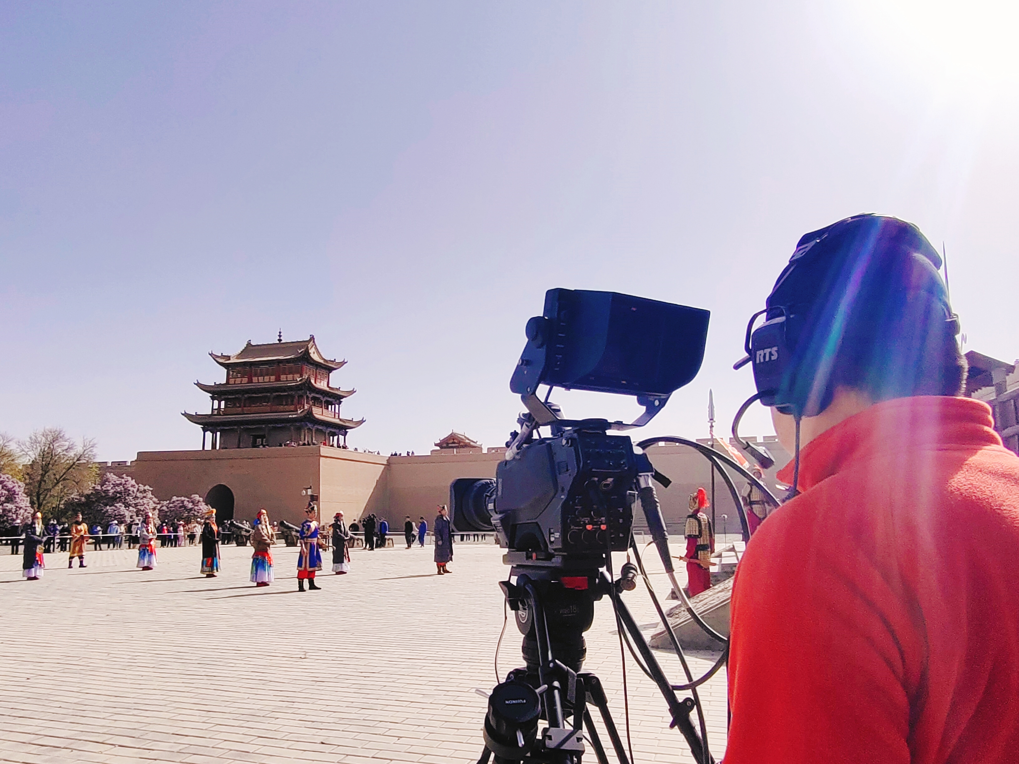 我们继续将镜头对准关城文昌阁这边的直播现场,