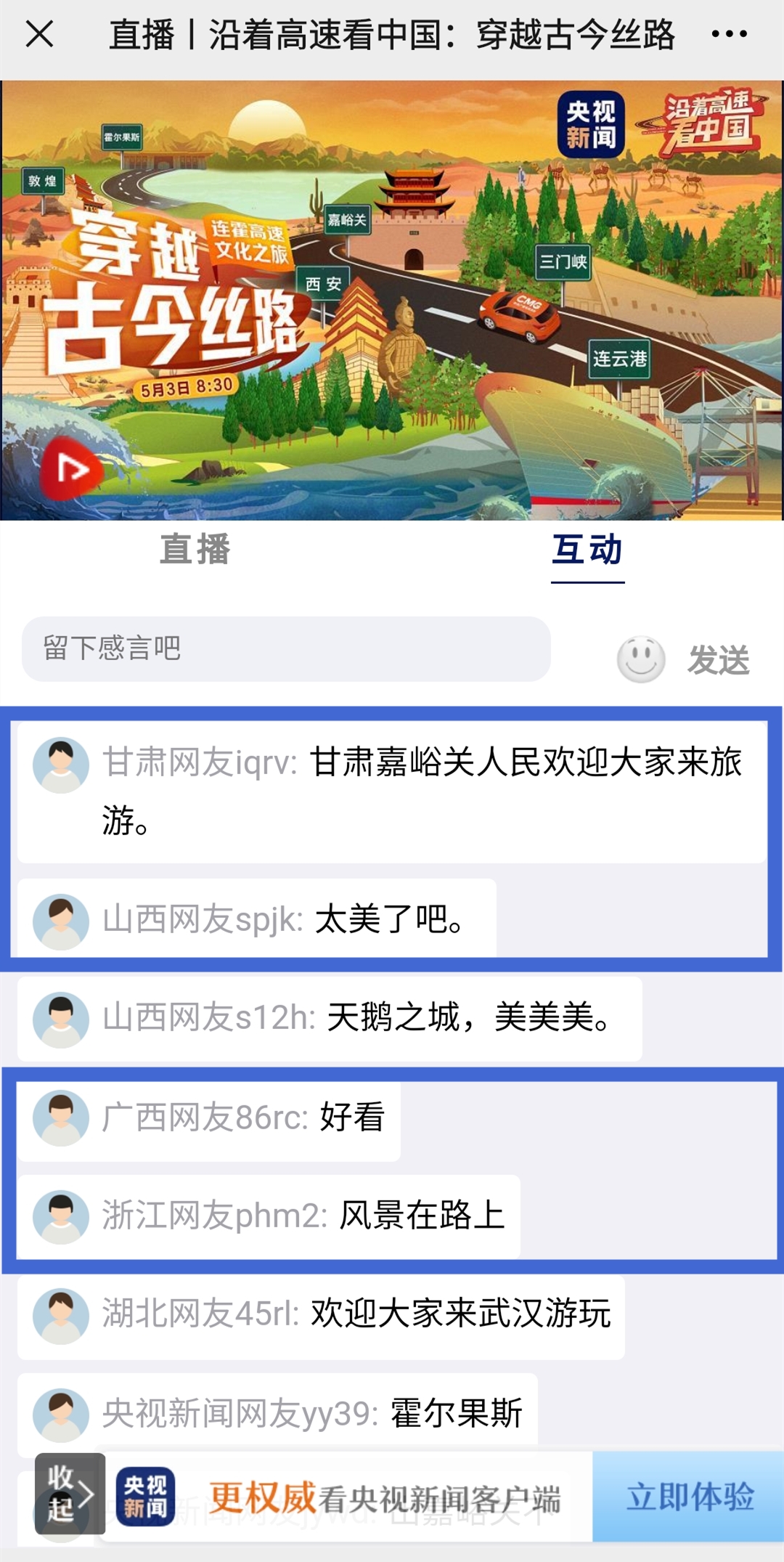 ▲央视新闻客户端直播互动页面,网友一致好评