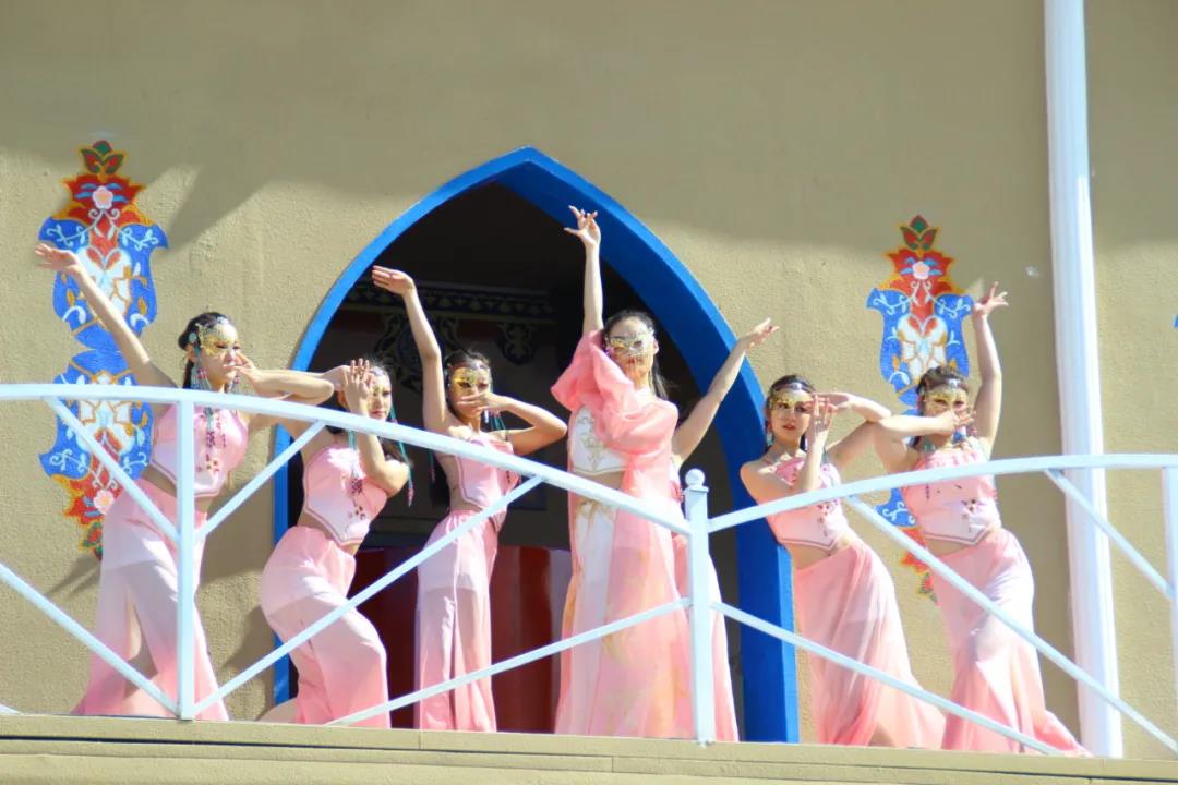 在丝路风情街,各种各样的美食让人垂涎欲滴。游客们在享受美食的同时,还能看到身穿古装的演员们翩翩起舞,她们充满异域风情的表演让人仿佛置身于古代的丝绸之路。