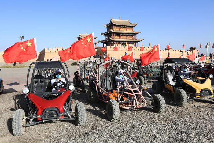 图为10月4日,游客在关城景区玩卡丁车。嘉峪关日报全媒体通讯员马玉福摄