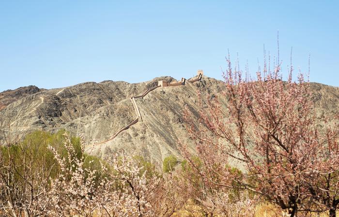 阳春三月,悬壁长城脚下树木吐绿,杏花、桃花、梨花、苹果花竞相绽放,争奇斗艳,与悬壁长城构成一幅美丽的春色画卷。嘉峪关日报全媒体记者 高深摄
