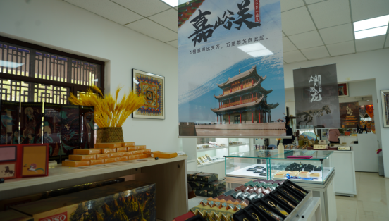 嘉峪关文创店分别在文昌阁广场东南角和中门三角广场,店内面积分别为200平和210平,售卖品类包括文化用品、首饰类、布艺、玩具类等共500多种。产品融合了明长城文化、西域边塞文化、魏晋汉墓、河西走廊等代表嘉峪关IP的衍生品,受到广大的游客喜爱。