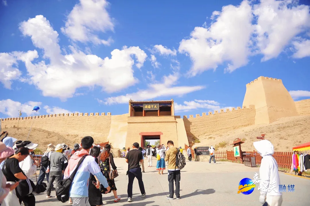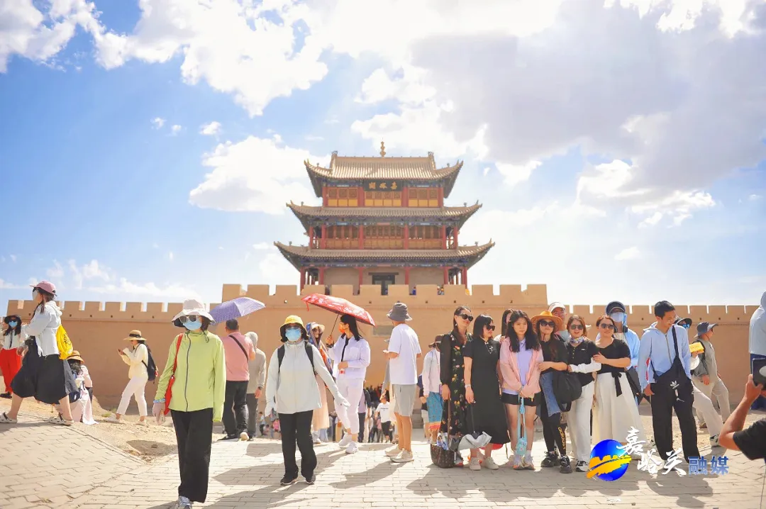 临近暑期,嘉峪关关城迎来旅游旺季,每日接待游客1.6万人次,各地游客纷纷登上关城欣赏长城的巍峨壮观,体验戈壁的苍凉壮阔,感悟长城文化的厚重与深远。图为游客在“天下第一雄关”嘉峪关关城打卡游玩。