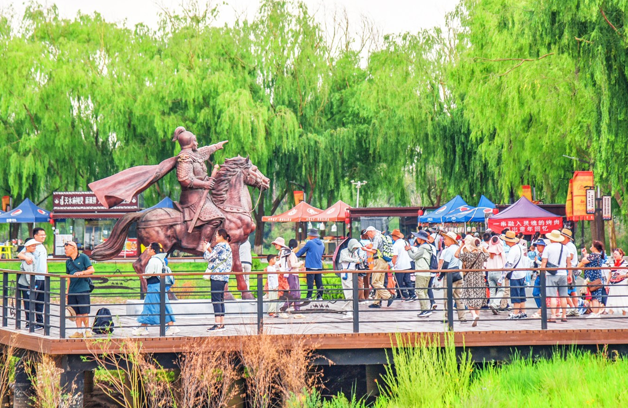 暑期以来,关城景区迎来旅游旺季,来自全国各地的游客络绎不绝,景区于7月15日全面启动夜游模式,进一步丰富旅游资源,激发夏日旅游市场活力。游客们漫步关城、登高望远,欣赏长城的巍峨壮观,感受六百多年的历史沉淀。 这是近日游客在关城景区入口处冯胜雕像前游览。