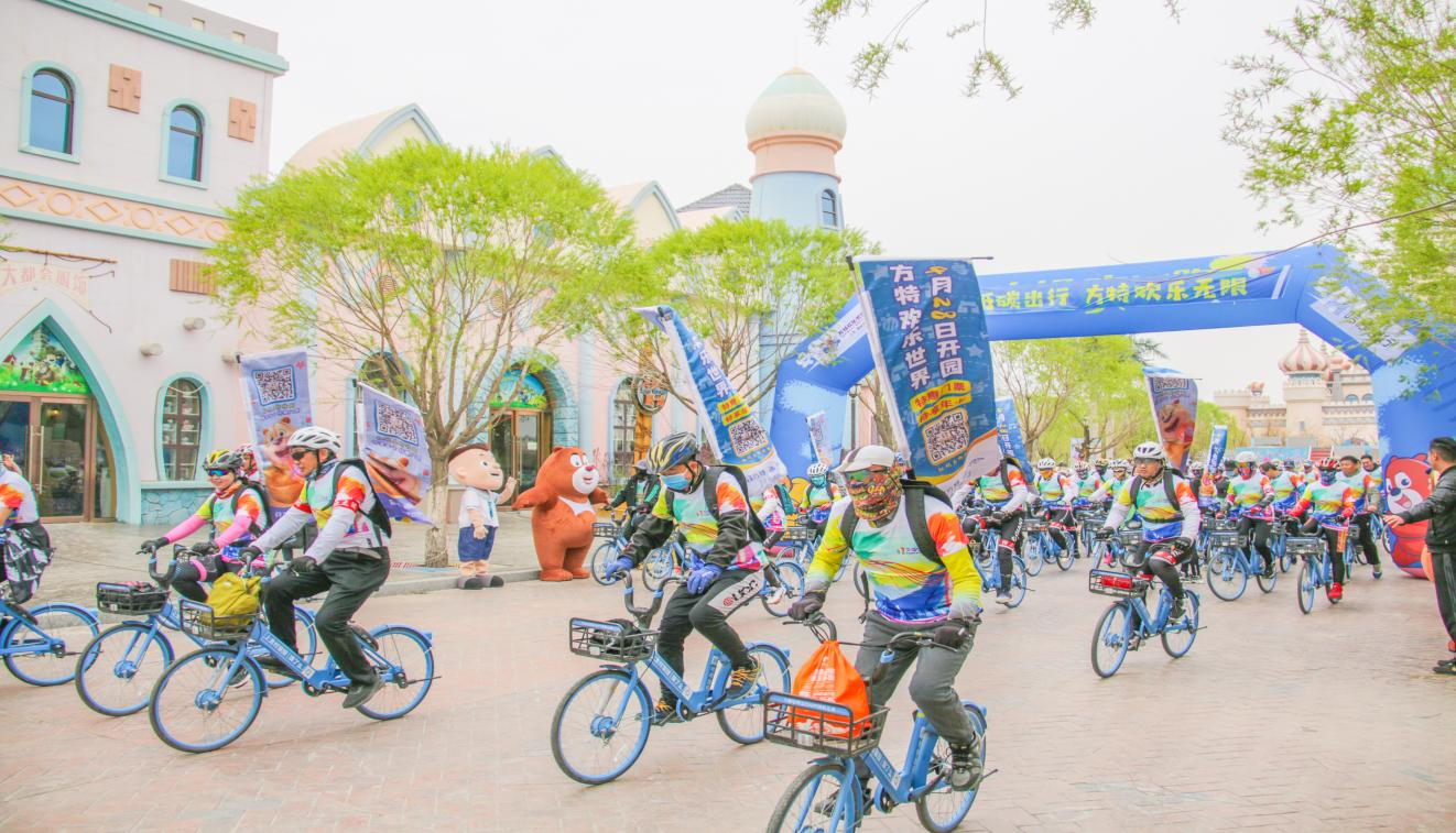 4月24日下午3时许,嘉峪关方特欢乐世界联手哈啰单车举办的“哈啰低碳出行 方特欢乐无限”骑行活动正式开始。