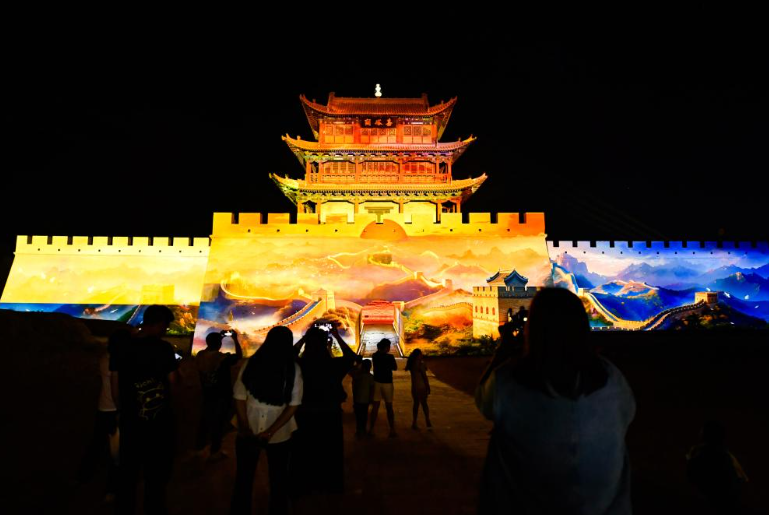 今年暑期,嘉峪关关城全面开启夜游模式,通过激光投影、数字科技、舞台实景演艺等多元形式,让“天下第一雄关”在光影交织中焕发新活力。