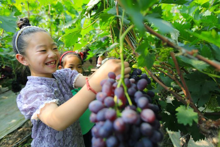 近日,游客在文殊镇冯家沟村采摘园采摘葡萄,尽享假日生活。 近年来,文殊镇大力调整农业产业结构,因地制宜大力推广葡萄、草莓、油桃、蟠桃、甜瓜、早酥梨、李广杏等特色水果和农产品种植,同时配套推出农家乐园、田园采摘、生态观光、农家烧烤体验等系列旅游项目,吸引了众多游人前往采摘观光,既丰富了旅游业态,...