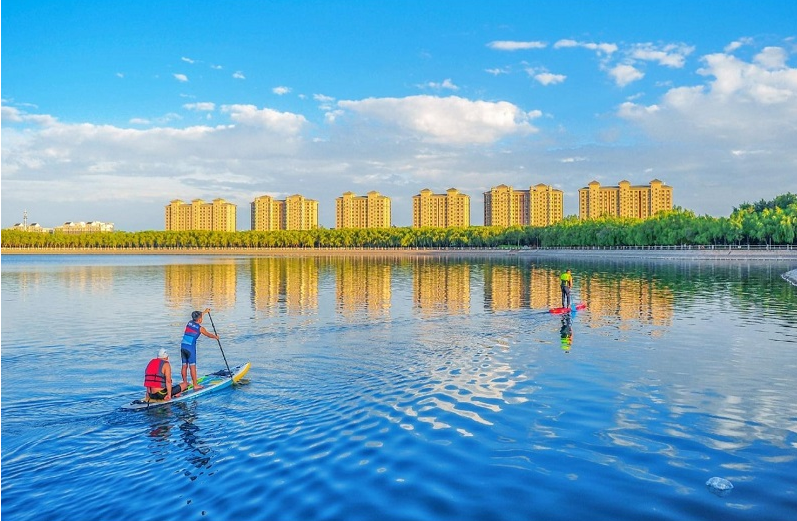 一场雷阵雨过后,东湖生态旅游景区空气清新,湖水碧波荡漾,构成一幅优美的生态画卷。市民纷纷前来悠闲泛舟,感受初秋美景。
