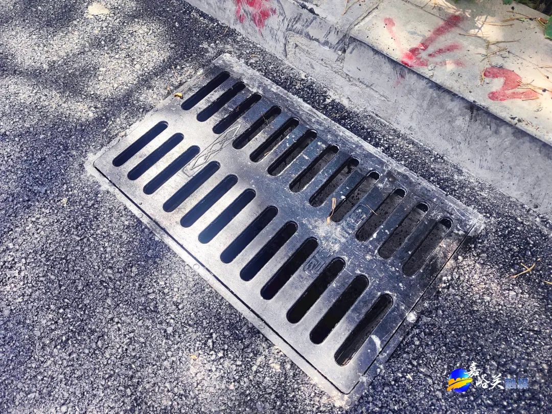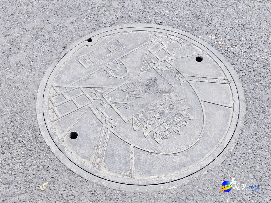 ▲图为兰新西路上崭新的高分子井圈井盖。这种设计可以使下水井与周围路面无缝平整衔接, 很好解决了沉降、跳响、易盗、易破等顽疾,保证了市民出行安全。井盖上刻有长城文化元