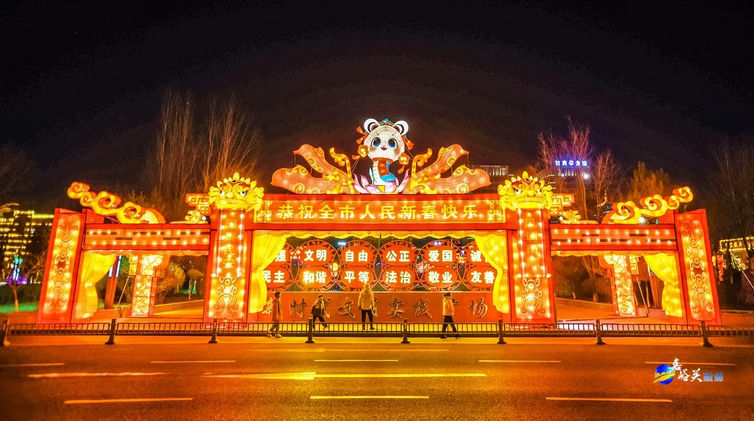 嘉峪关雄关广场、东湖公园及周边绿化树木也装饰彩灯,五光十色的花灯营造出热烈的节日气氛。