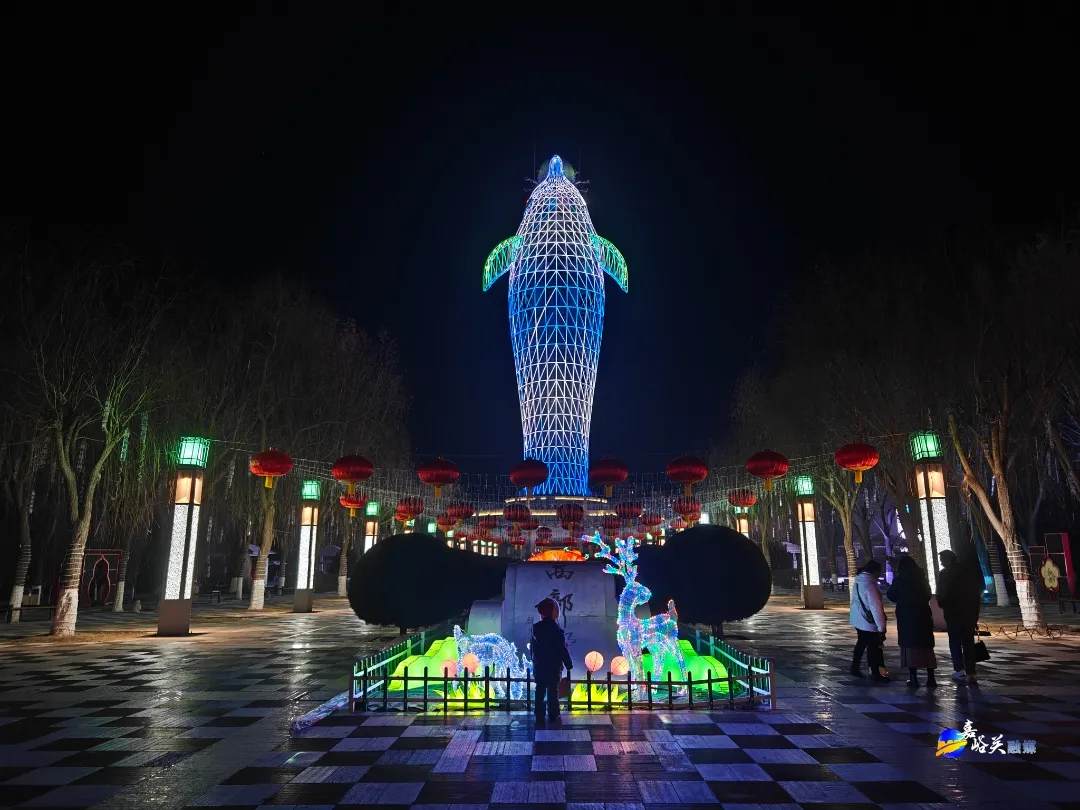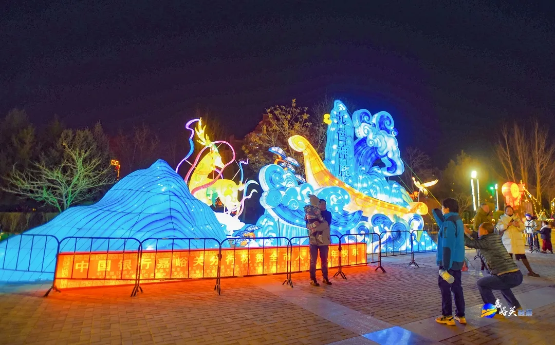 近日,分布在嘉峪关城区各广场、公园的形态各异的大型灯组全部安装完毕,并点亮,吸引了不少居民前来观赏。