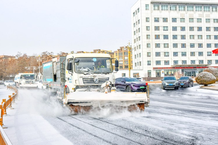 2月11日,环卫部门除雪设备上路扫雪,保障出行。