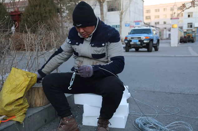 ▲天气寒冷,工人师傅的手早已冻的麻木