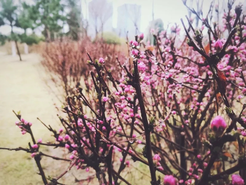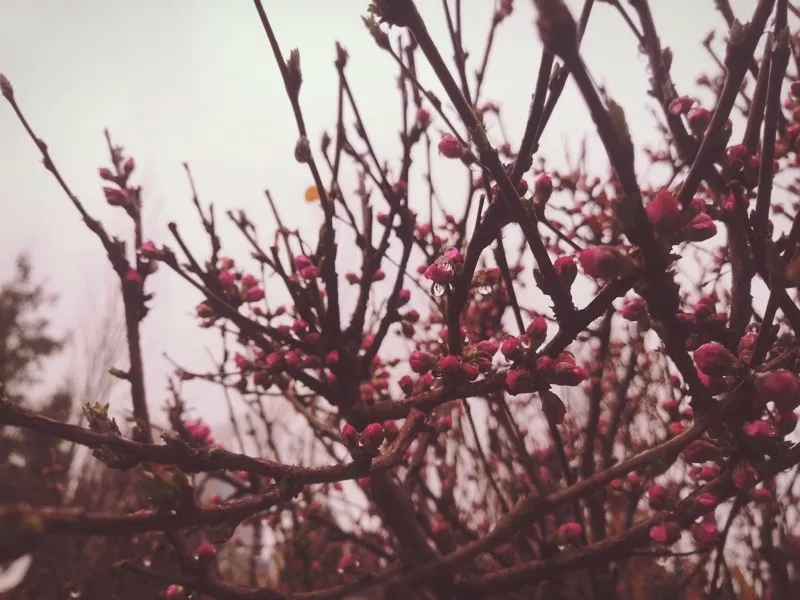 烟雨朦胧,雨打花蕾,