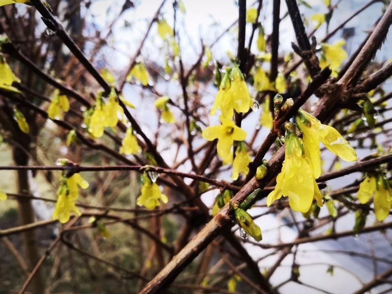 春雨与鲜花交织共舞,