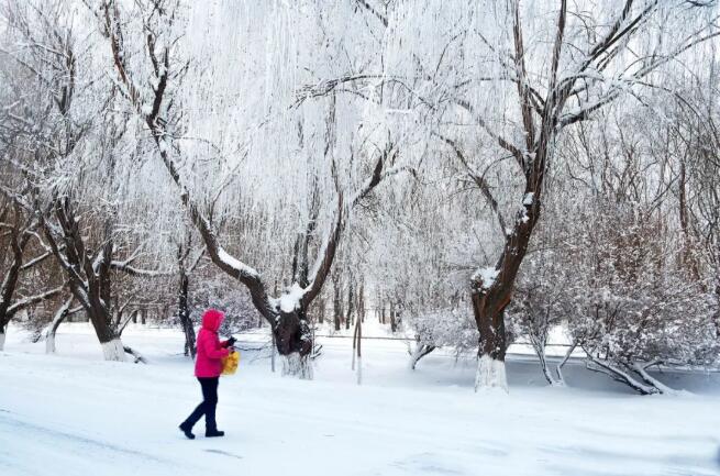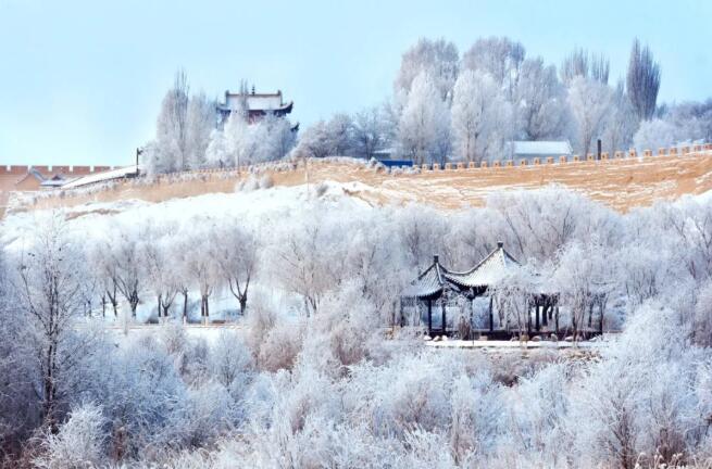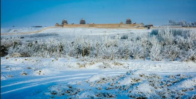 雪后的嘉峪关,城里城外的树枝上也是挂满冰雪,似舞动的雪白缎带,洋溢着雄关的巍峨,也尽显着戈壁的温柔,处处是一片北国风光。