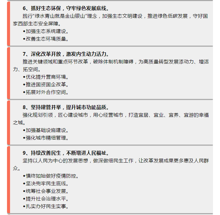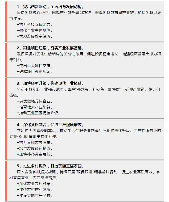 2021年是“十四五”规划的开局之年,也是全面建设社会主义现代化进程中至关重要的一年。全市经济社会发展主要预期目标是:地区生产总值增长7%,固定资产投资增长7%,社会消费品零售总额增长7%,一般公共预算收入增长4%,城乡居民人均可支配收入分别增长7%、8%,居民消费价格指数涨幅控制在3%左右,单位生产总值能耗和主要污染物排放完成省级下达控制指标。