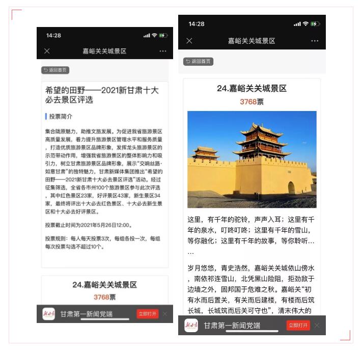 嘉峪关的朋友们,快来为嘉峪关关城景区投票打Call,可在好评景区内找到嘉峪关参评景区投票,投票截止时间为2021年5月26日12:00。