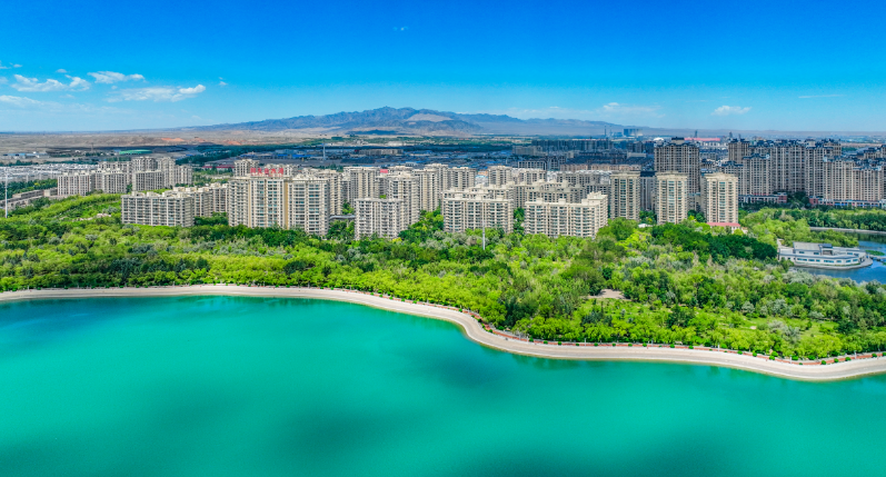 坚持引水进城,通过系统治理将昔日的荒滩河道变为连绵15公里的城市水系,建成集调蓄、生态、景观等功能于一体的人工湖18个,人均水域面积高达30.4平方米,全市空气优良率始终保持在85%以上,可一览大漠、雪山、戈壁、峡谷、湿地等自然风光。