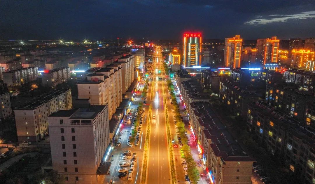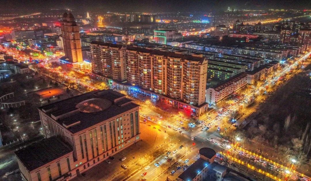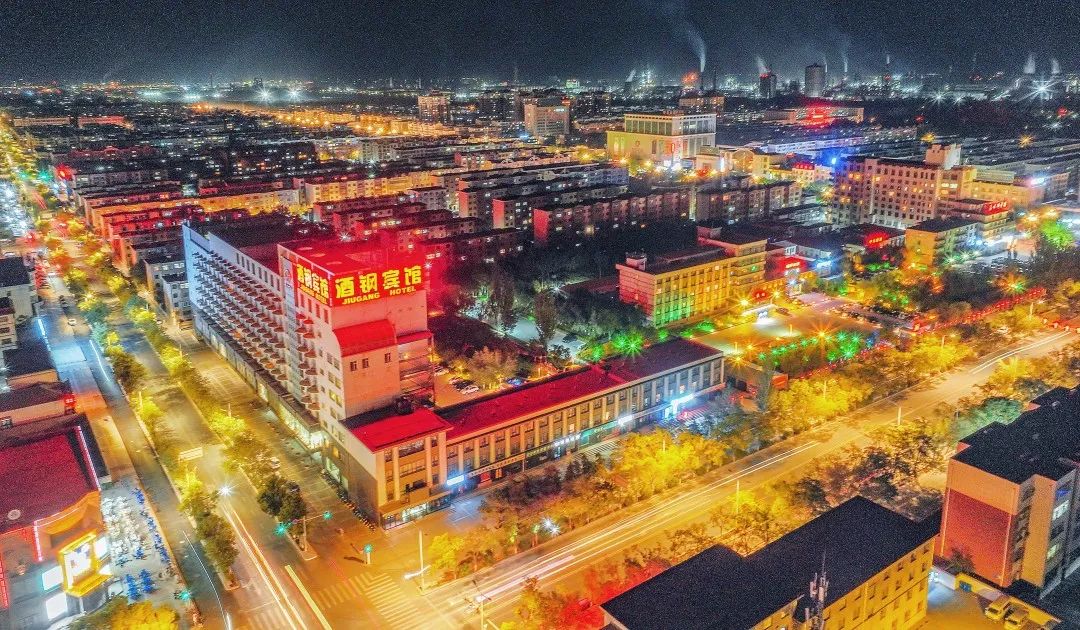 从空中俯瞰嘉峪关城市的夜景