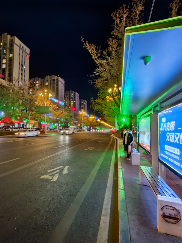公交车站的灯光