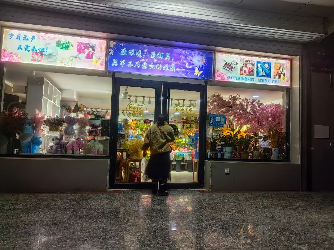 花店里的花静静地看着川流的人群