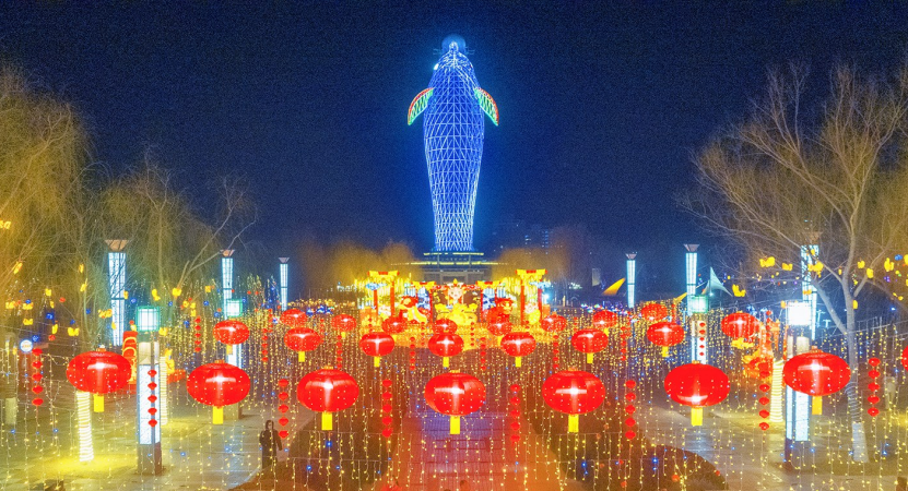 近日,分布在嘉峪关城区各广场、公园的形态各异的大型灯组全部安装完毕,并点亮,吸引了不少居民前来观赏。
