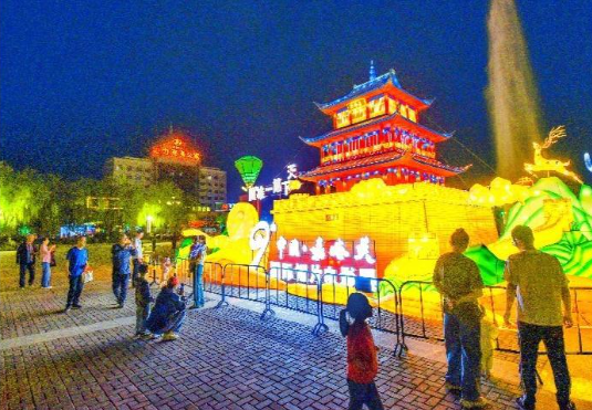 9月9日晚,为即将开幕的第九届中国·嘉峪关国际短片电影展特别制作的三组大型彩灯,在雄关广场点亮展示,吸引众多市民赏灯留影。