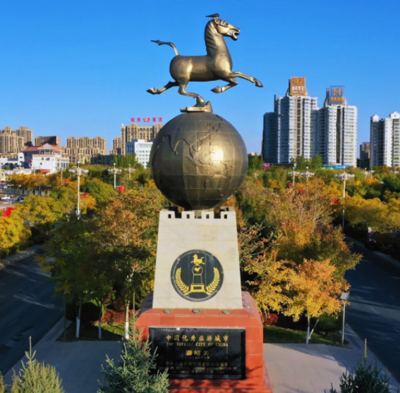 建成于2001年6月,地点在嘉峪关市雄关广场转盘中心。雕塑总高度39米,宽10米×7米。结构骨架内衬碳钢板,表面为2.5厘米厚的镜面不锈钢,总重量约60吨,雕塑由主体及长城造型基座两大部分组成,辅以魏晋墓壁画“农耕““出巡”图浮雕。涵...