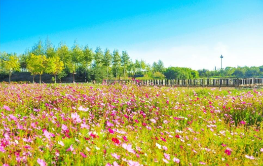 花卉博览园秋景宜人,吸引市民前来游览休闲。