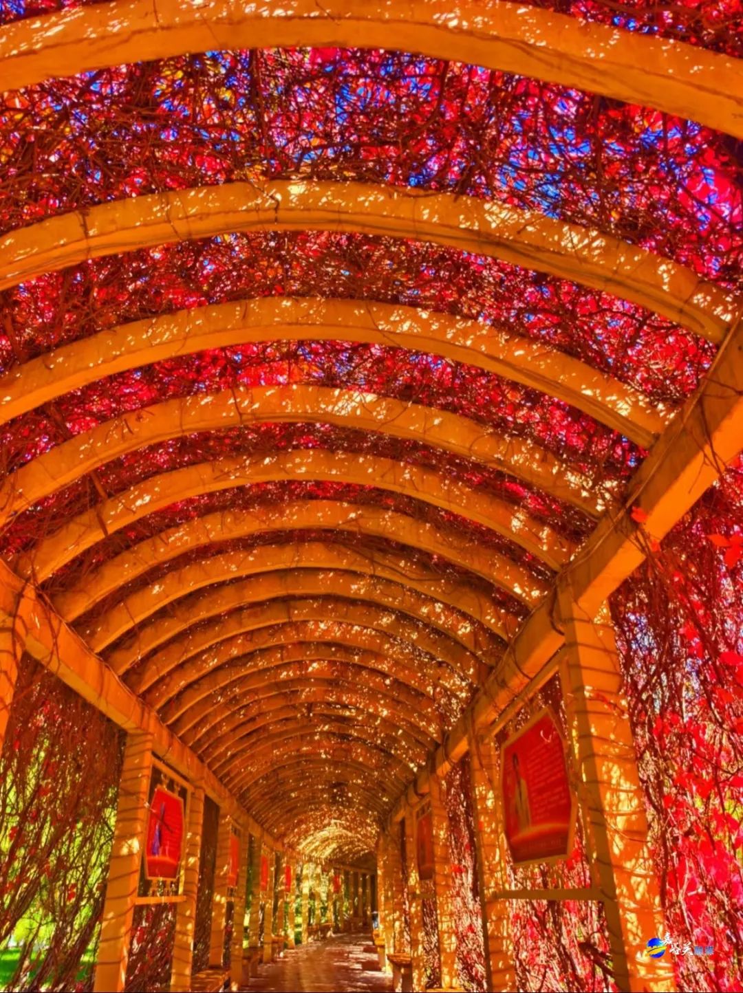 一夜之间为长廊披上了红装
