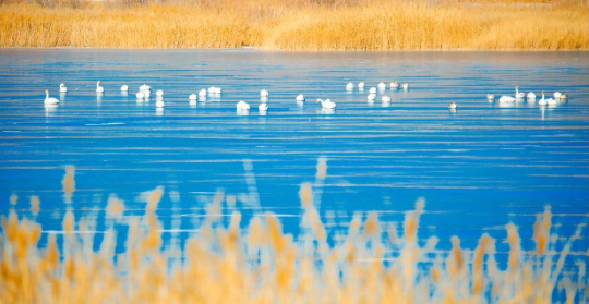 新城草湖国家湿地公园迎来大批越冬天鹅在此栖息、觅食、游弋、飞舞。