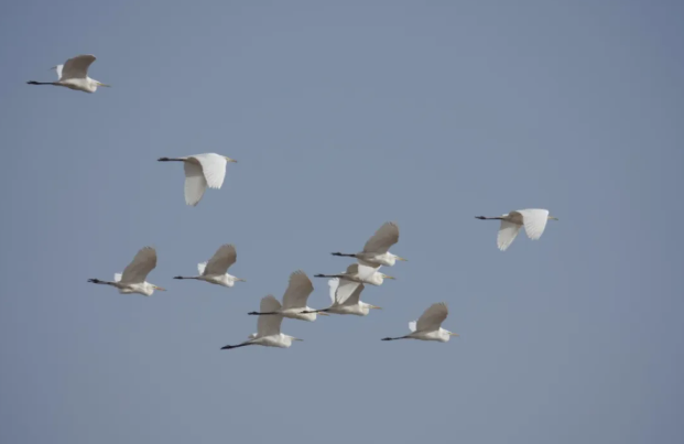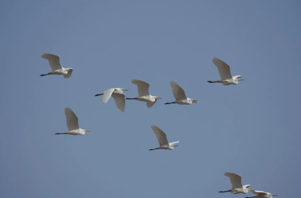 3月11日,嘉峪关草湖国家湿地公园工作人员在巡逻中发现数十只夏候鸟——白鹭已悄然归来,它们或驻足浅滩觅食,或展翅翱翔于天际,优雅的身姿点缀着湖光山色,为初春的草湖湿地公园增添了一抹灵动与生机。
