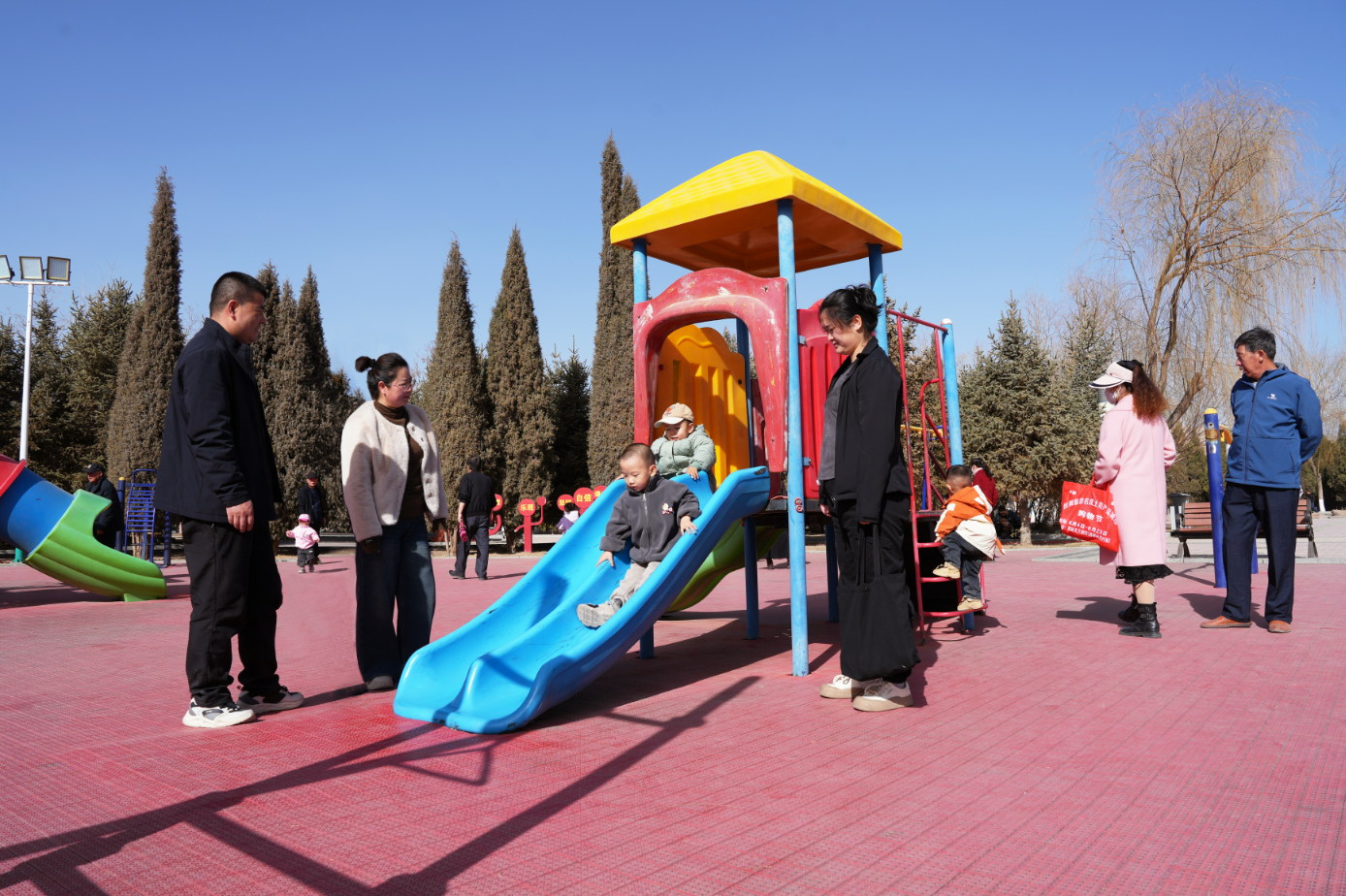图①:孩子们在儿童健身区玩耍