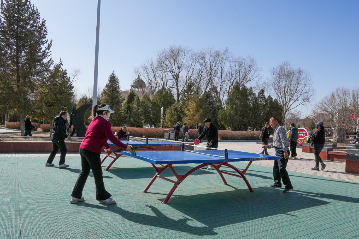 图③:市民在公园打乒乓球锻炼身体