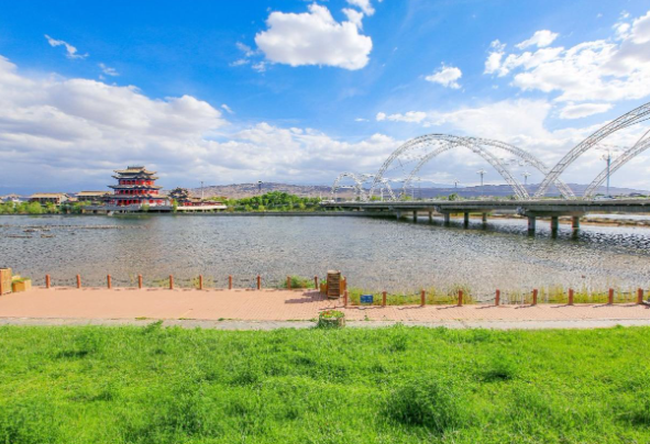 秋日的讨赖河畔景色宜人,蓝天白云下,碧水荡漾,如同一条透明的蓝绸子静静地躺在雄关大地的怀抱,呈现出一幅美丽的生态画卷。