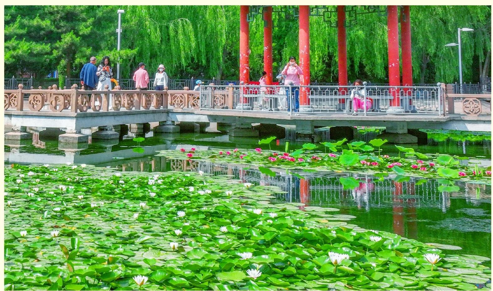 浮萍增采色,轻压绿池莲。近日,我市雄关公园内,朵朵睡莲贴着水面竞相盛开,精致的花瓣、妩媚的色彩,为夏日池塘增添生趣,令人赏心悦目,心旷神怡。