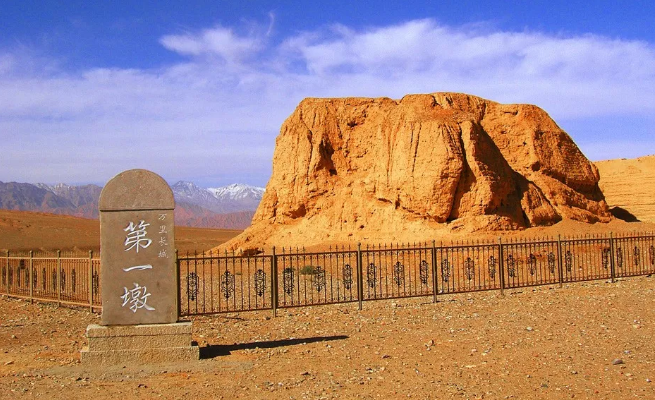 长城第一墩位于讨赖河畔,北距关城7.5公里,西距市区12.5公里。长城第一墩,又称讨赖河墩,是嘉峪关西长城最南端的一座墩台,也是明代万里长城最西端的一座墩台,北距关城7.5公里,矗立于讨赖河边近56米高的悬崖之上。