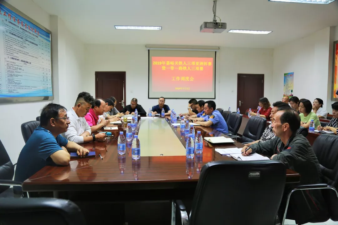 7月2日上午,嘉峪关体育总会、中铁协、卫健委等各部门联合召开2019年嘉峪关铁人三项亚洲杯赛暨“一带一路”铁人三项赛调度会,统筹安排赛事相关事项,力争安全、顺利、优质的推进赛事圆满完成。