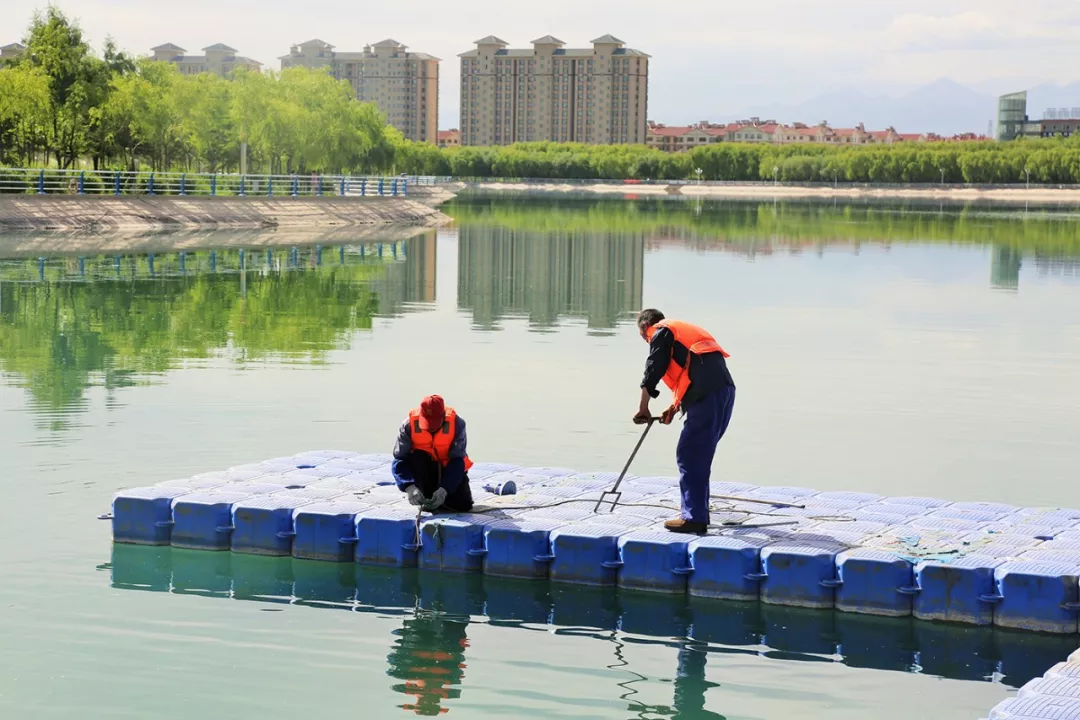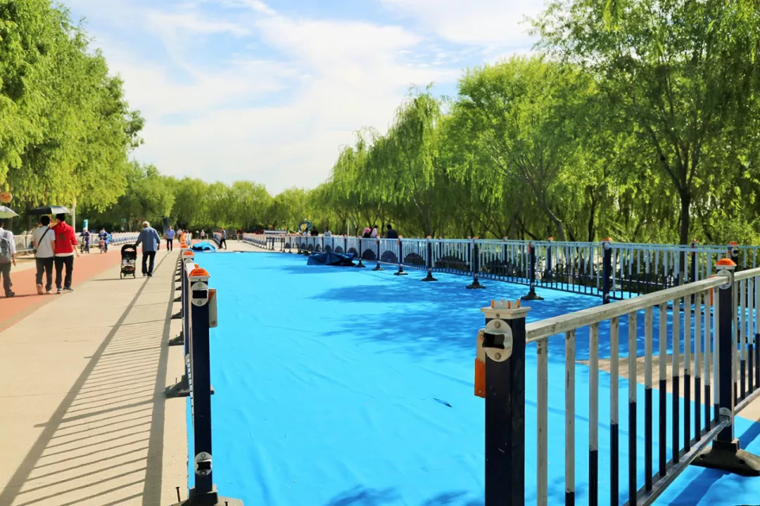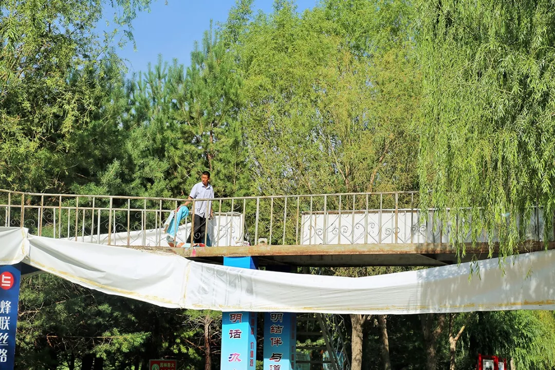 场地横幅也在工作人员顶着烈日的汗水中换新颜。