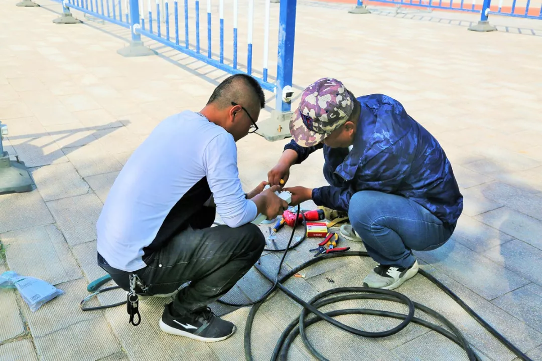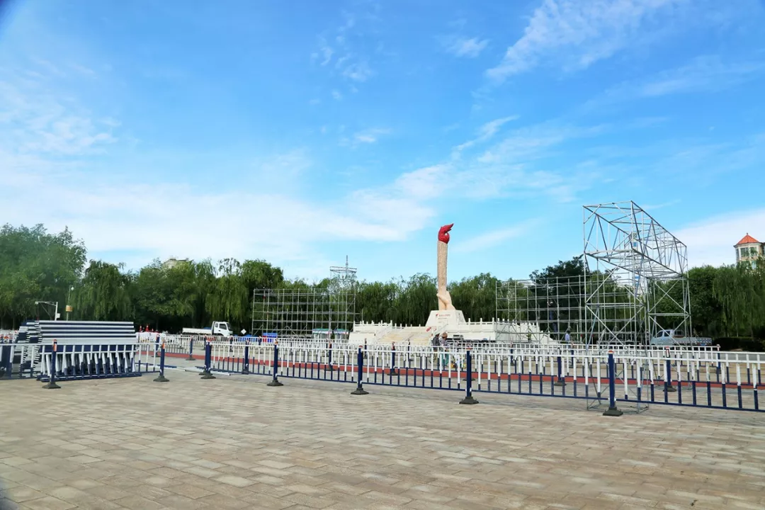 工人们有序的进行着一项又一项的场地搭建任务,每一个人都谨守岗位,认真对待每一个小细节。