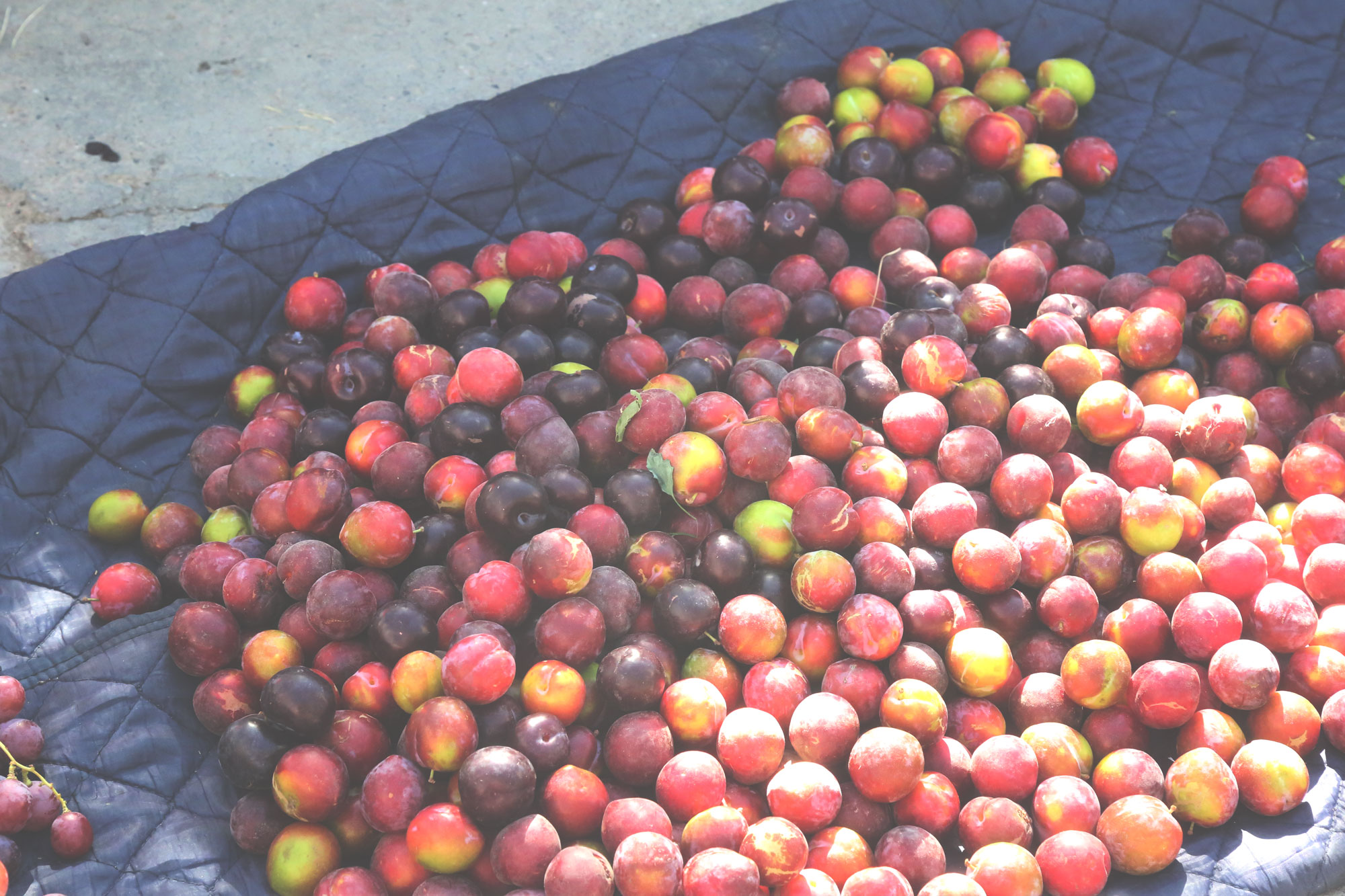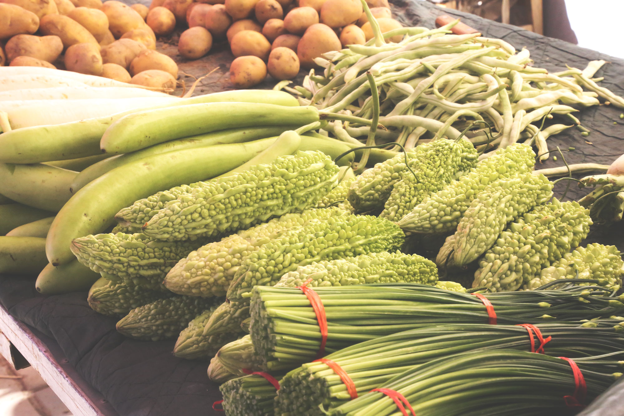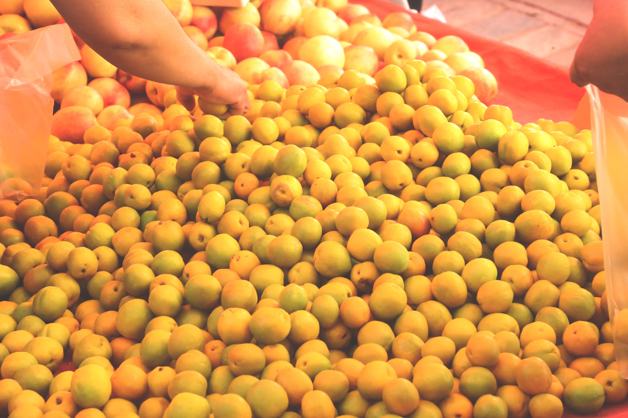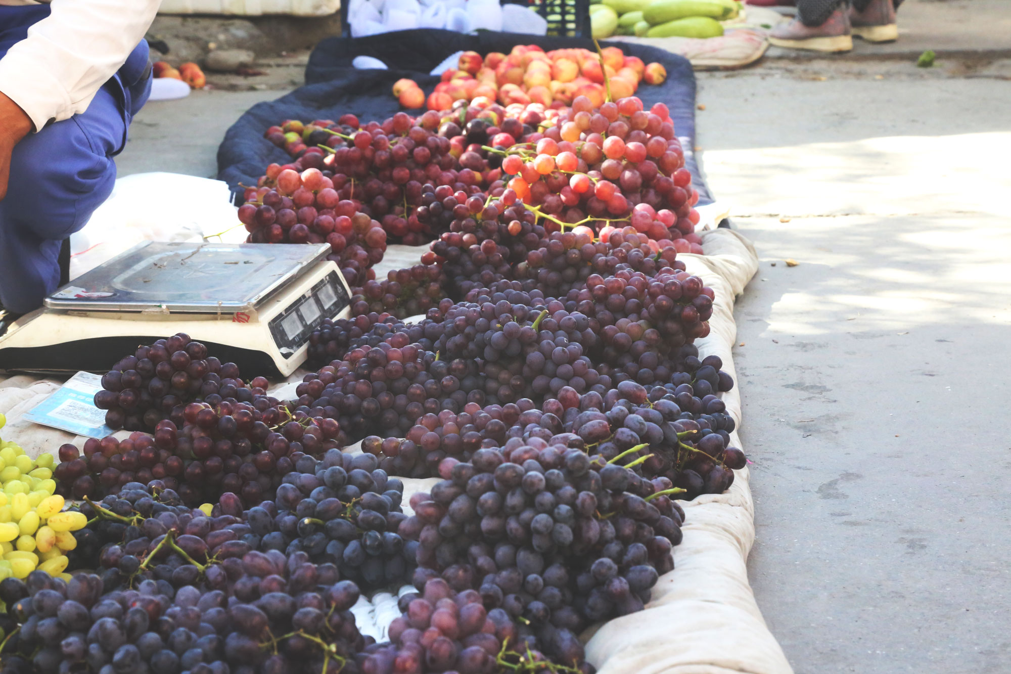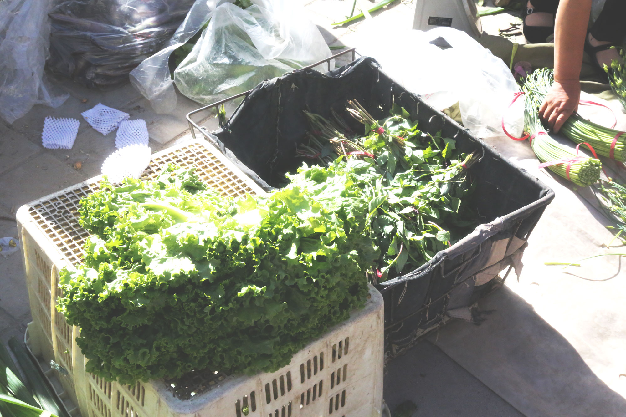 水果蔬菜等都很新鲜,很多是近郊村民自产自销,还有一些贩运果蔬的零售商贩。这些摊位在道路两侧一溜排开。