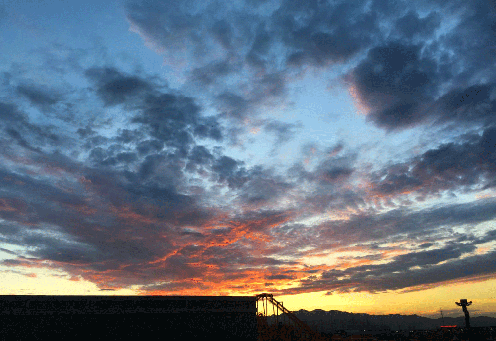 嘉峪关的日出,有种宁静之美。太阳慢慢透出重围,出现在天空,把一片片云染成了黄色或者红色。